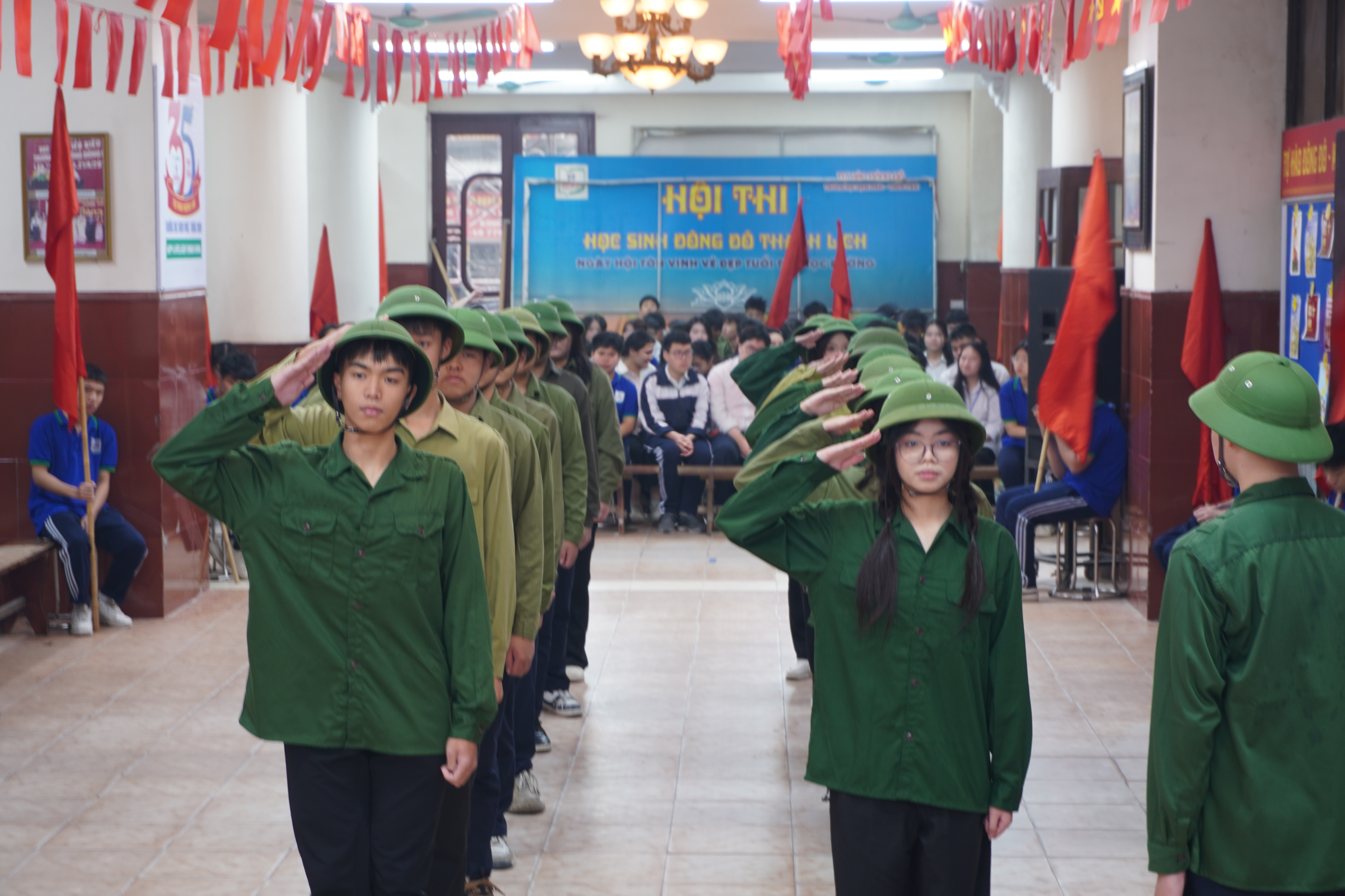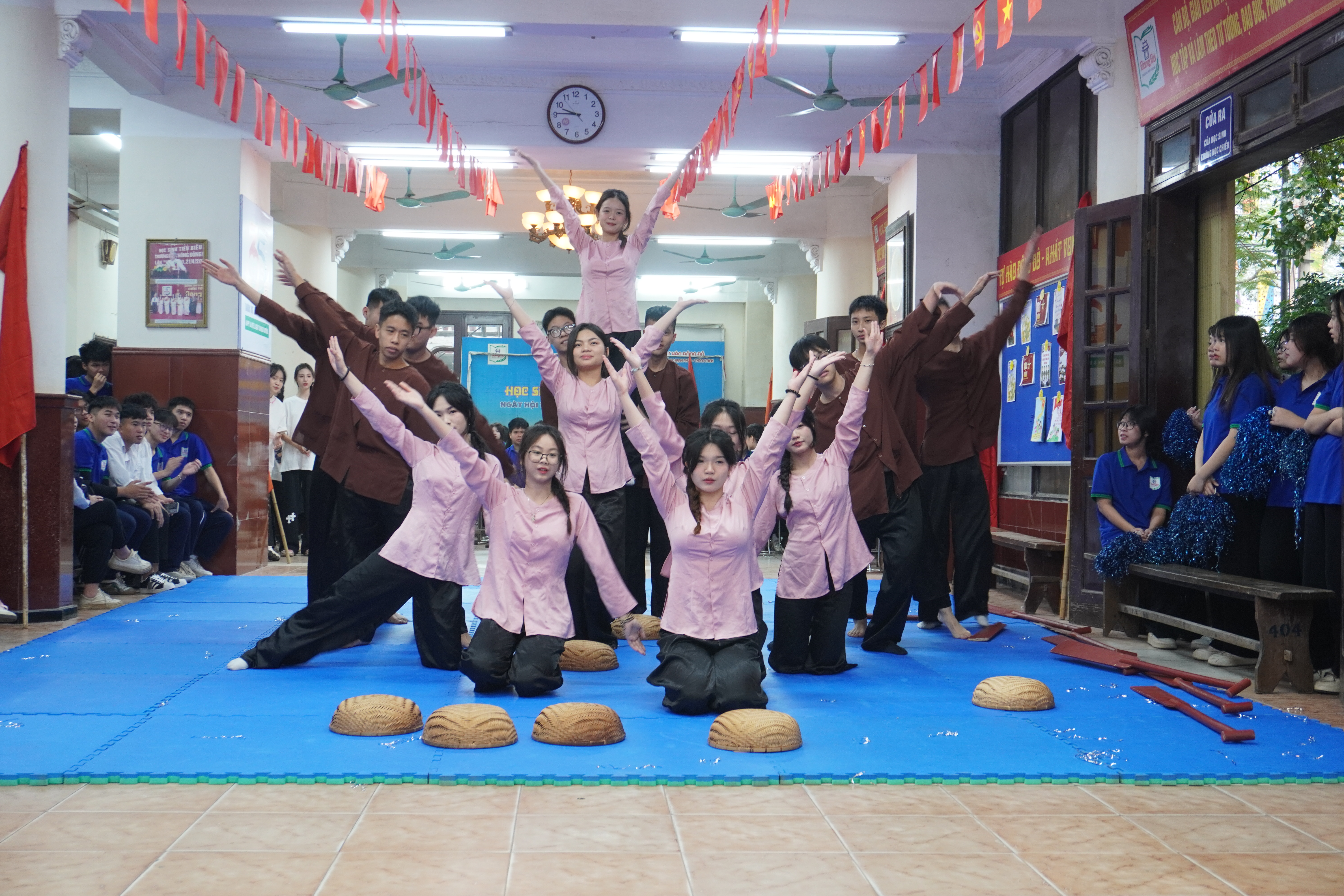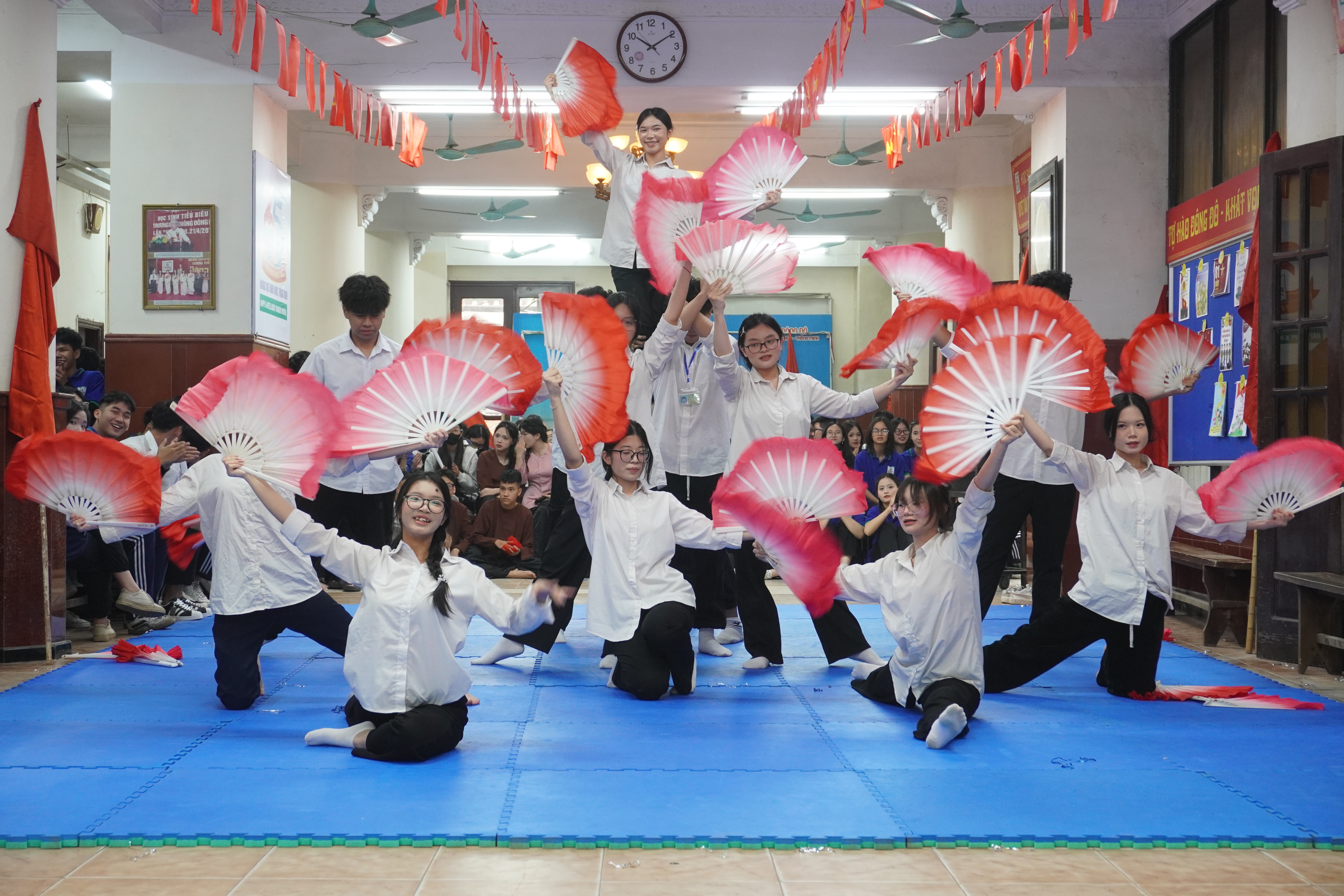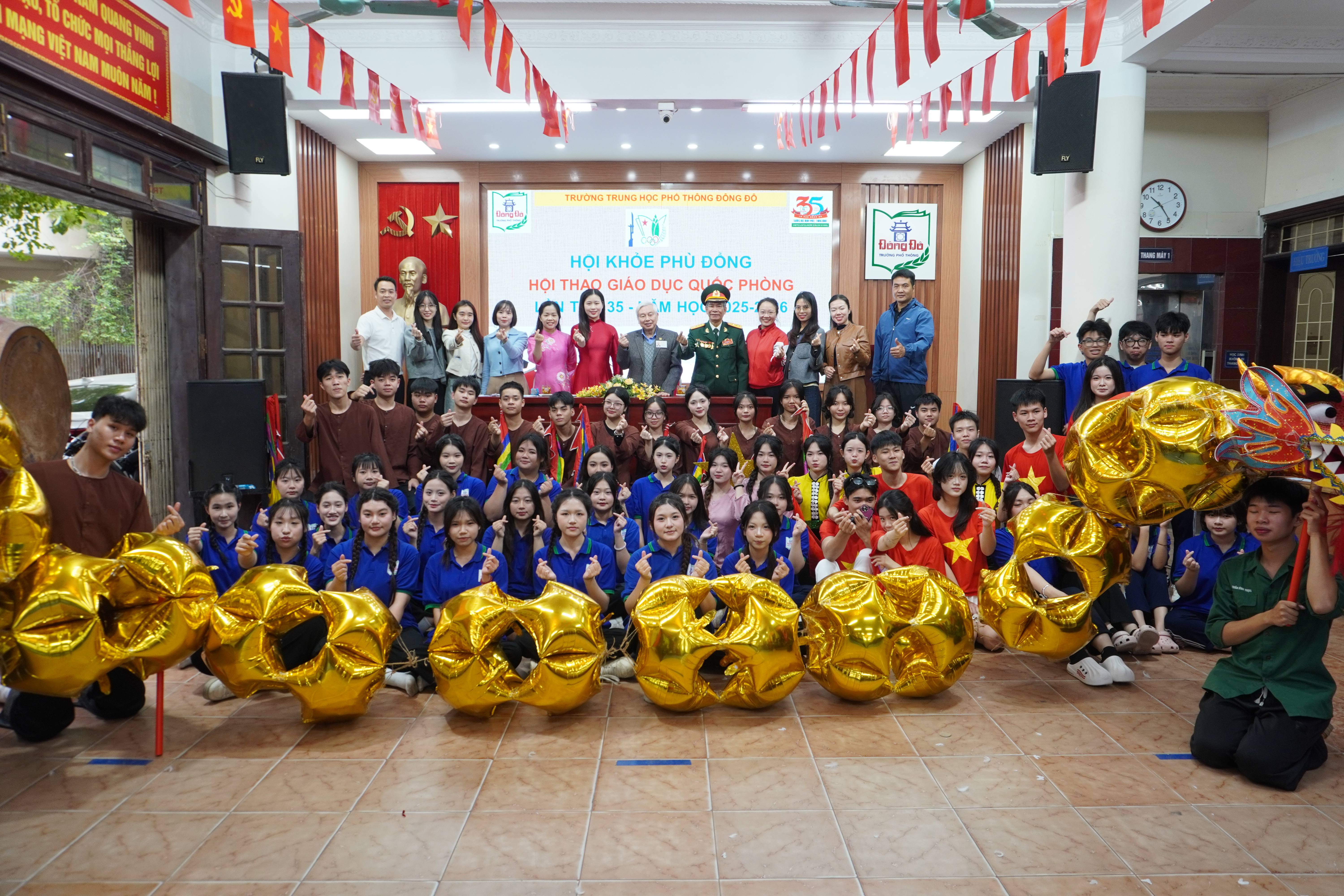 Khép lại chương trình là màn nhảy sạp sôi động, rộn ràng tiếng cười, thể hiện tinh thần đoàn kết, gắn bó giữa các tập thể lớp và toàn thể học sinh trường THPT Đông Đô, để lại nhiều ấn tượng tốt đẹp đối với mỗi thầy cô giáo và các em học sinh. Hội khỏe Phù Đổng – Hội thao GDQP-AN lần thứ 35 không chỉ là sân chơi bổ ích, góp phần nâng cao thể lực, bản lĩnh và kỹ năng cho học sinh, mà còn khẳng định sự quan tâm của nhà trường trong việc giáo dục toàn diện, xây dựng môi trường học tập năng động, tích cực và giàu bản sắc Đông Đô.