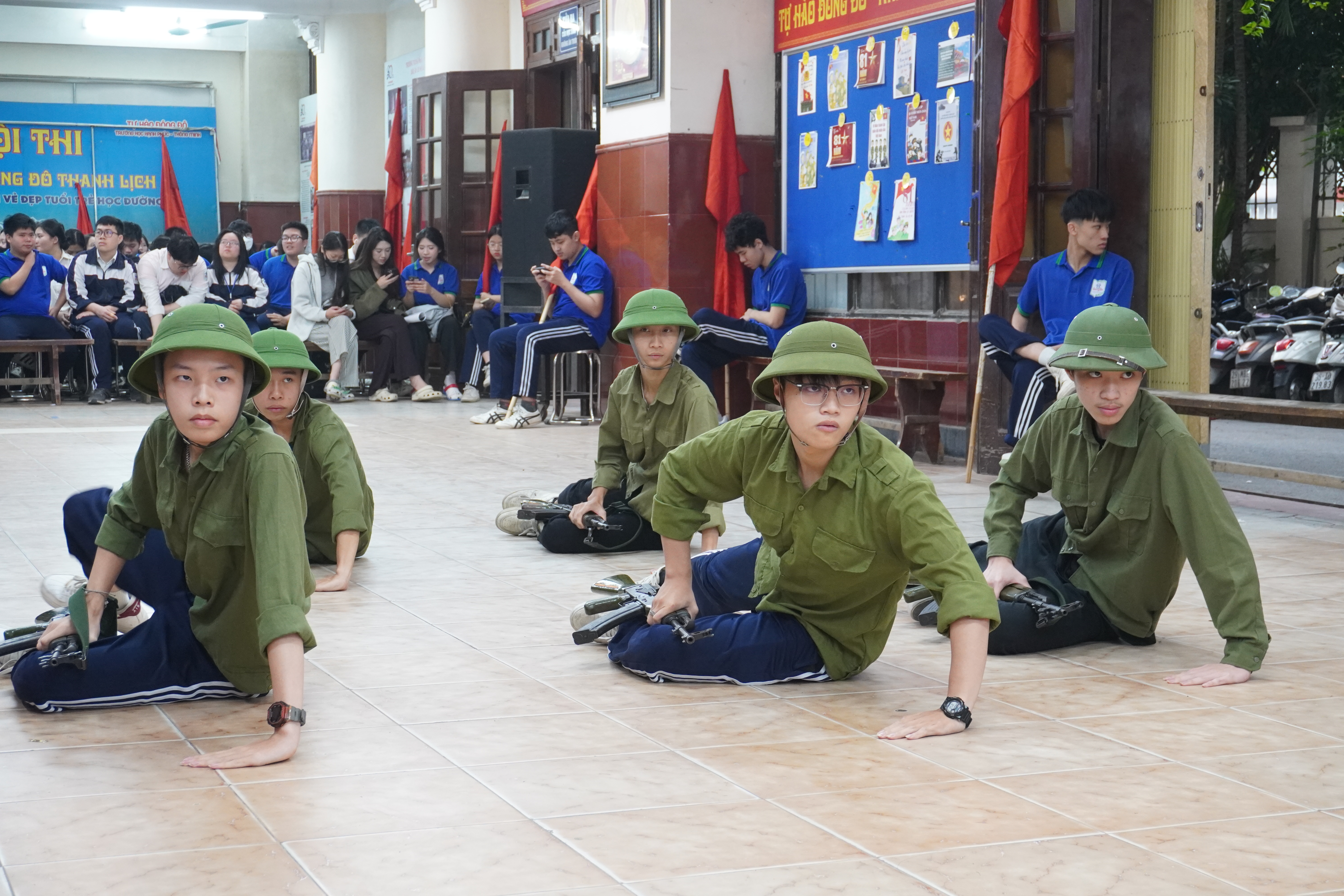Ngay sau phần diễu hành, các đội bước vào tranh tài với nhiều nội dung phong phú, thiết thực, gắn liền với chương trình Giáo dục Quốc phòng và An ninh trong nhà trường.