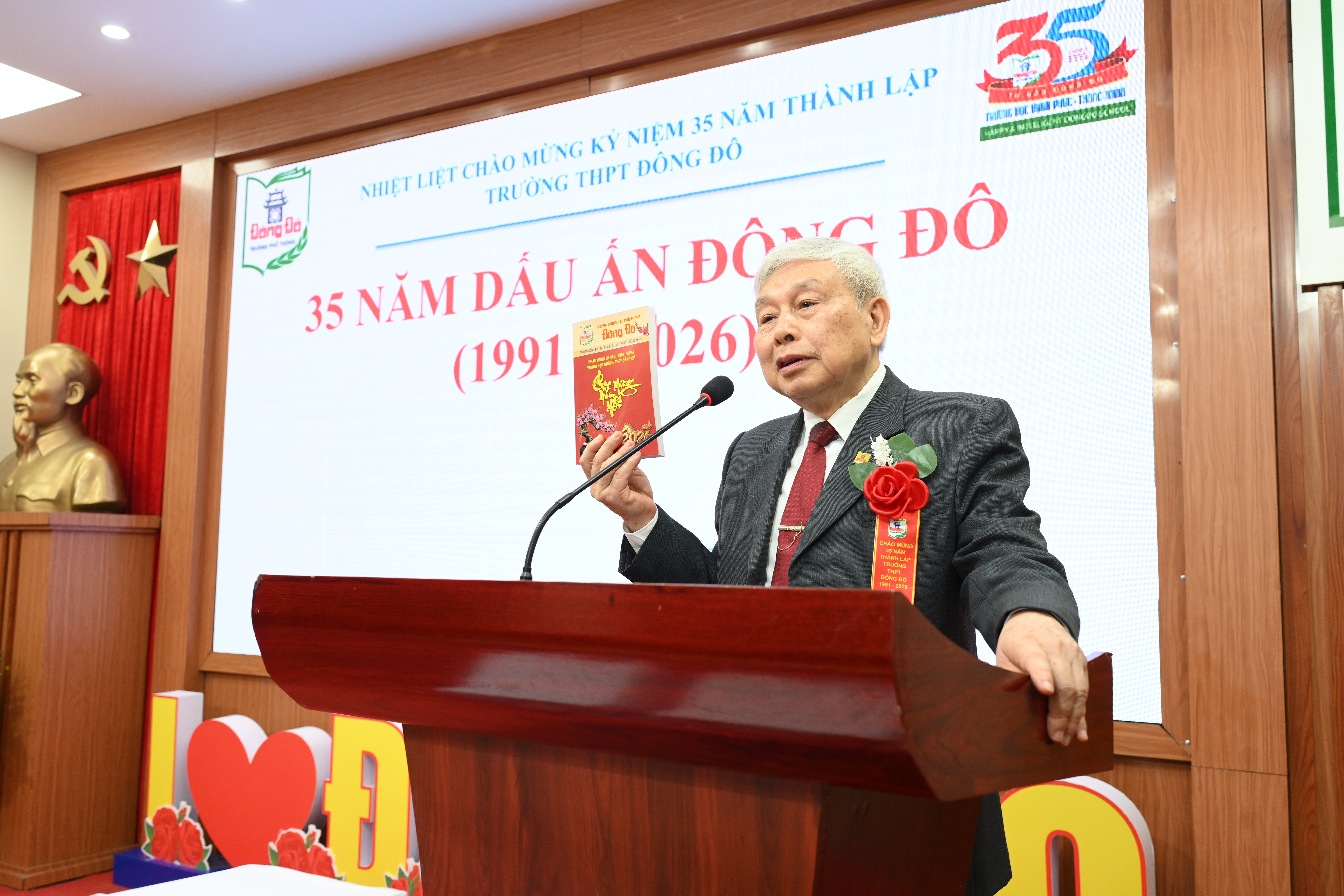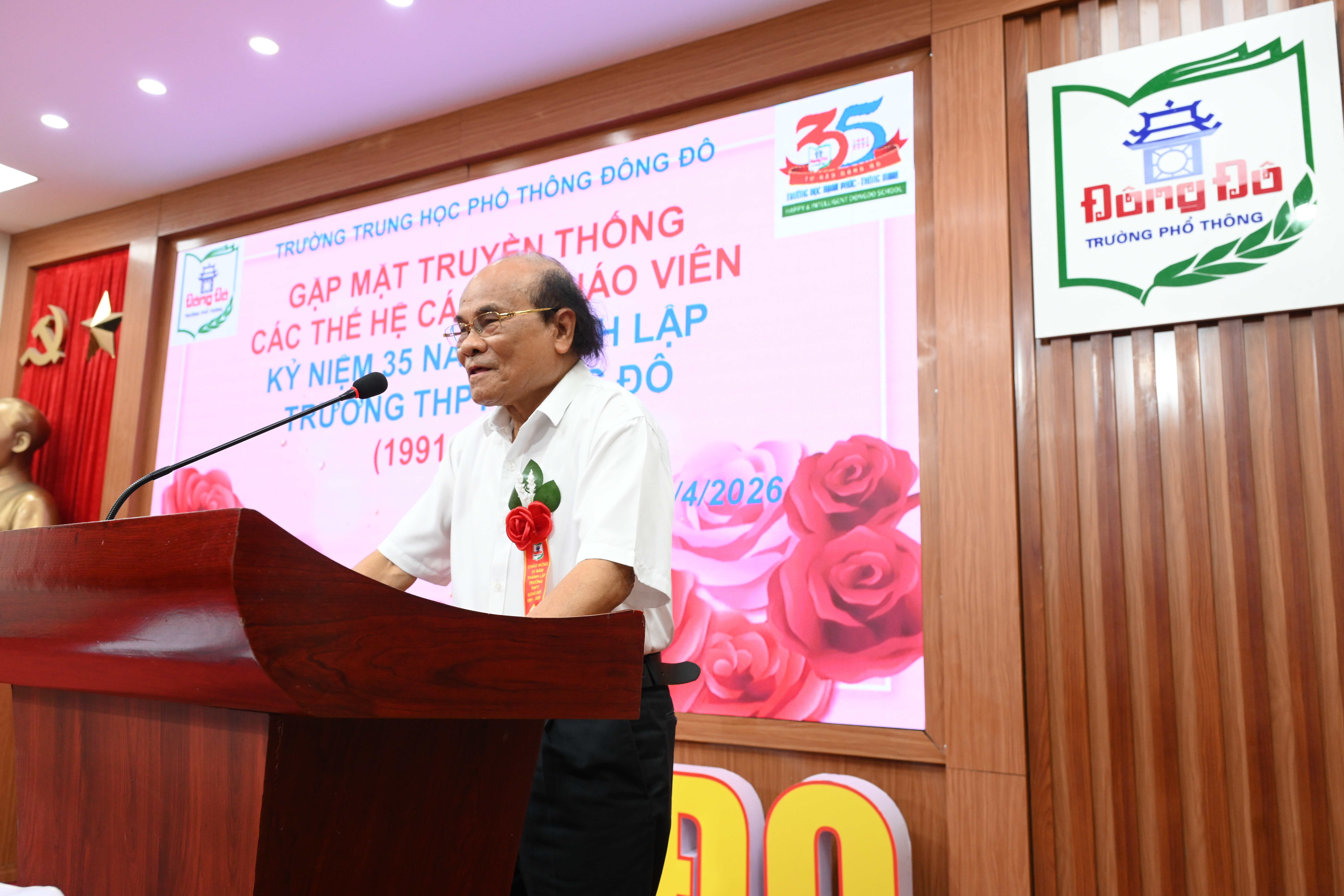 TS. Võ Thế Quân - Bí thư Chi bộ, Chủ tịch Hội đồng trường đã khái quát lại chặng đường phát triển của nhà trường từ 1991 đến nay, từng bước xây dựng Trường học Hạnh phúc - Thông minh dựa trên triết lý giáo dục Đông Đô. Thầy nhấn mạnh thành công của nhà trường trong 35 năm qua là nhờ tập thể các thế hệ nhà giáo tài năng, tâm huyết, sự đồng hành tin tưởng của các bậc phụ huynh.